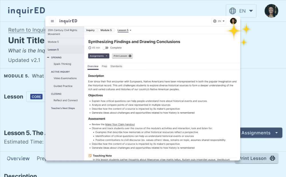 I moved to Seattle and consulted as a freelance UX designer and product strategist. I helped the founders of Knomee refine, develop, and prototype their vision, which allowed them to raise an initial $250,000 pre-seed round. In July 2023, I joined inquirED as their first UX/UI designer, where I established a Figma design system using and brought better navigation, accessibility, and mobile compatibility to the forefront of their curriculum platform for teachers.